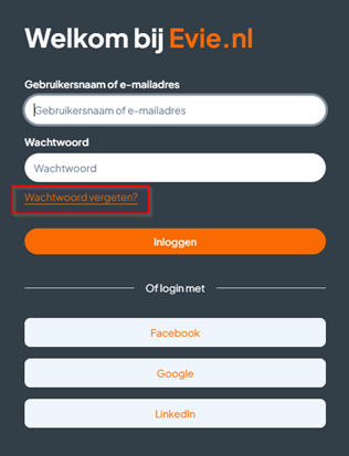 Wanneer je het wachtwoord bent vergeten, kun je op de inlogpagina klikken op Wachtwoord vergeten?